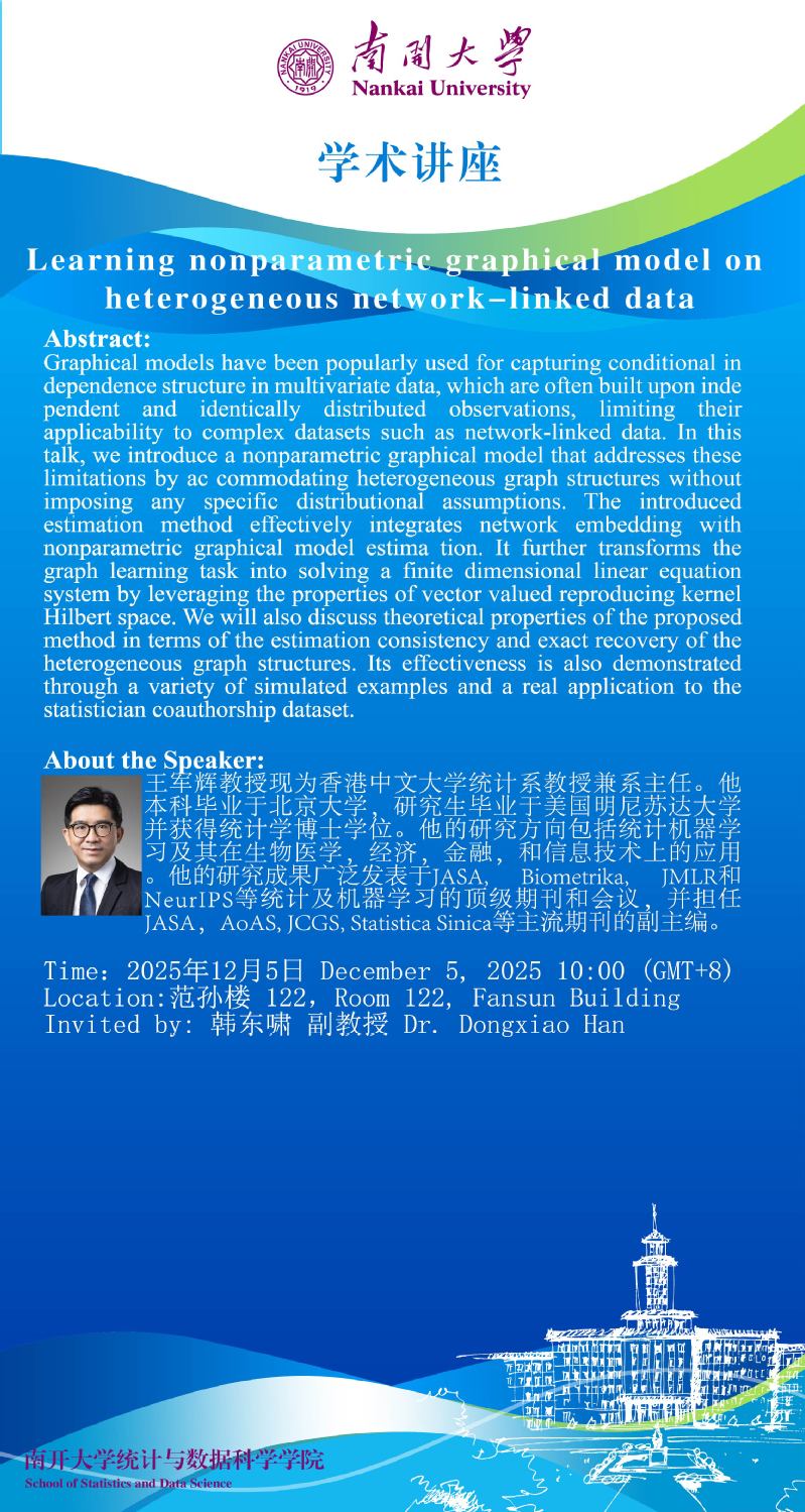 Learning nonparametric graphical model on heterogeneous network-linked data(王军辉)