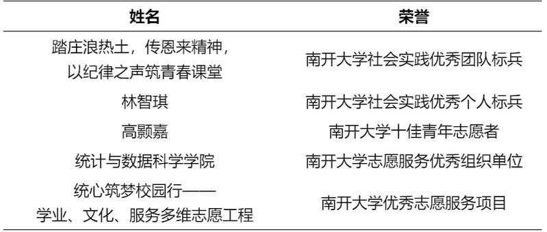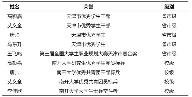 市级荣誉再添新彩:2名学生获评“天津市优秀学生干部”,2名学生获评“天津市优秀学生”,1名学生获第三届全国大学生职业规划大赛天津市赛决赛成长赛道金奖第一名,充分印证国产a片 人才培养的全面性与高质量;校级标兵层出不穷:3名学生分别获评国产a片 优秀学生党员标兵、优秀共青团干部标兵、优秀共青团员标兵,1名学生荣获“大学生士兵奋斗者”称号,形成“一个榜样一面旗,一群先锋带一片”的良好育人氛围,激励全院学子奋勇争先。