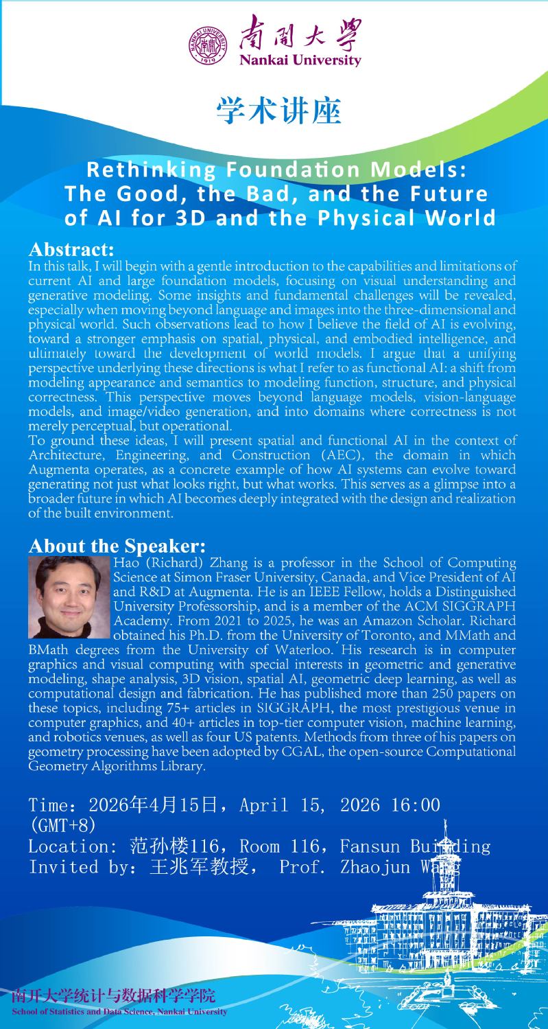 Rethinking Foundation Models: The Good, the Bad, and the Future of AI for 3D and the Physical World(Hao Zhang)